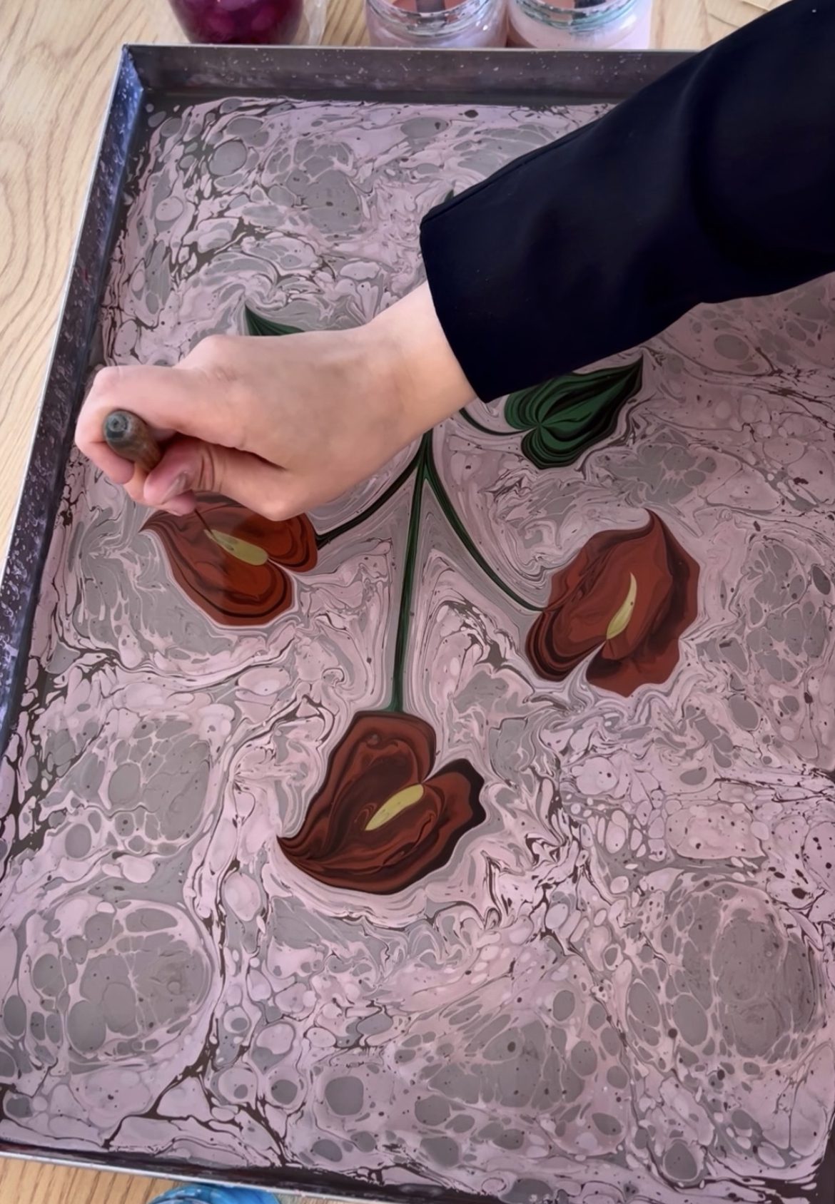 Turkish Ebru Art, or marbling, is a captivating technique that creates beautiful, swirling patterns on water, which are then transferred to paper. This centuries-old craft is known for its vibrant colors and unique designs, making each piece one-of-a-kind.